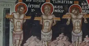 Овие тројца маченици биле блиски другари на светиот Теодор Тирон. По неговата славна маченичка смрт, тие останале затворени во затворот во градот Амесија. Долго време не биле осудени бидејќи во тоа време се вршела смена на царскиот намесник во градот.