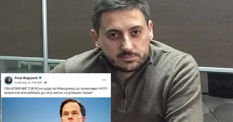 Овојпат, Богојески се „прослави“ со навредлива објава насочена кон генералниот секретар на НАТО, Марк Руте. Тој во својата скандалозна објава го нарекува првиот човек на Алијансата – „бРуте“ – алузија на познатата фраза од Јулиј Цезар „Et tu, Brute?“ („Зар и ти, сине Бруте?“), која симболизира предавство.