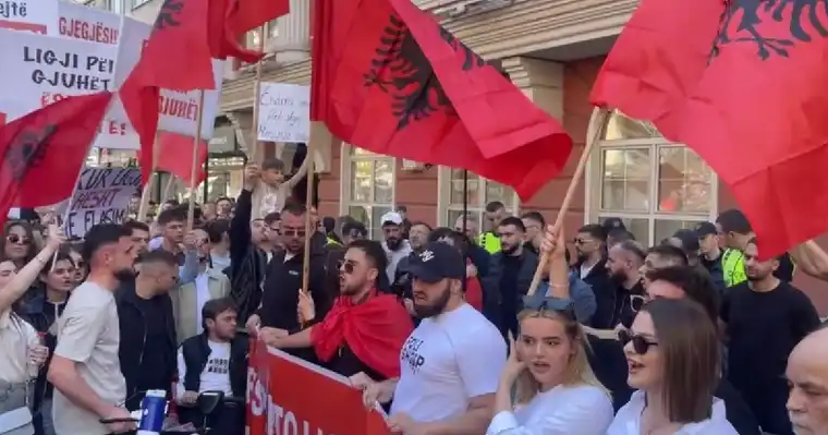 Со албански и американски знамиња, како и транспаренти со пораки „Стоп за институционалната дискриминација“, демонстрантите побараа правосудниот испит да може да се полага и на албански јазик. Дел од присутните скандираа и „УЧК УЧК“, додека други извикуваа пароли за одговорност и оставки.