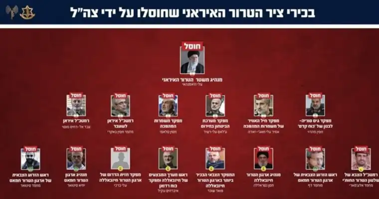 Israel Defense Forces соопштија дека во најновата ескалација на конфликтот со Иран „елиминирале сè повеќе лидери на иранската терористичка оска што се закануваше со уништување на Израел“. Во официјалното соопштение се наведува дека операциите биле насочени кон високопозиционирани воени и политички фигури поврзани со иранскиот безбедносен апарат.